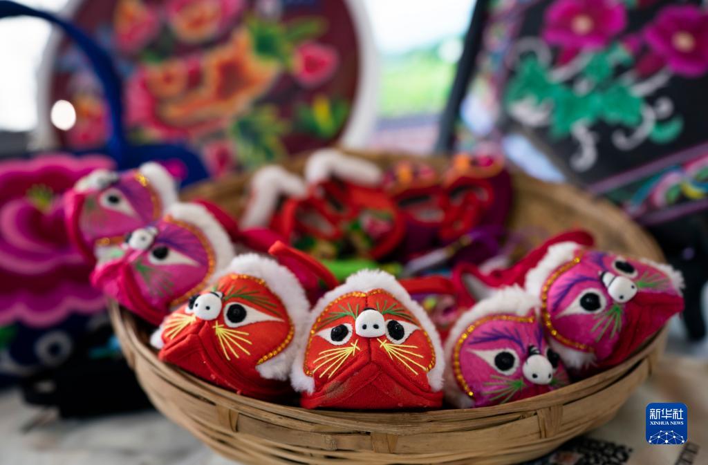 這是11月20日在南博會旅游文化館內拍攝的彝繡虎頭鞋。