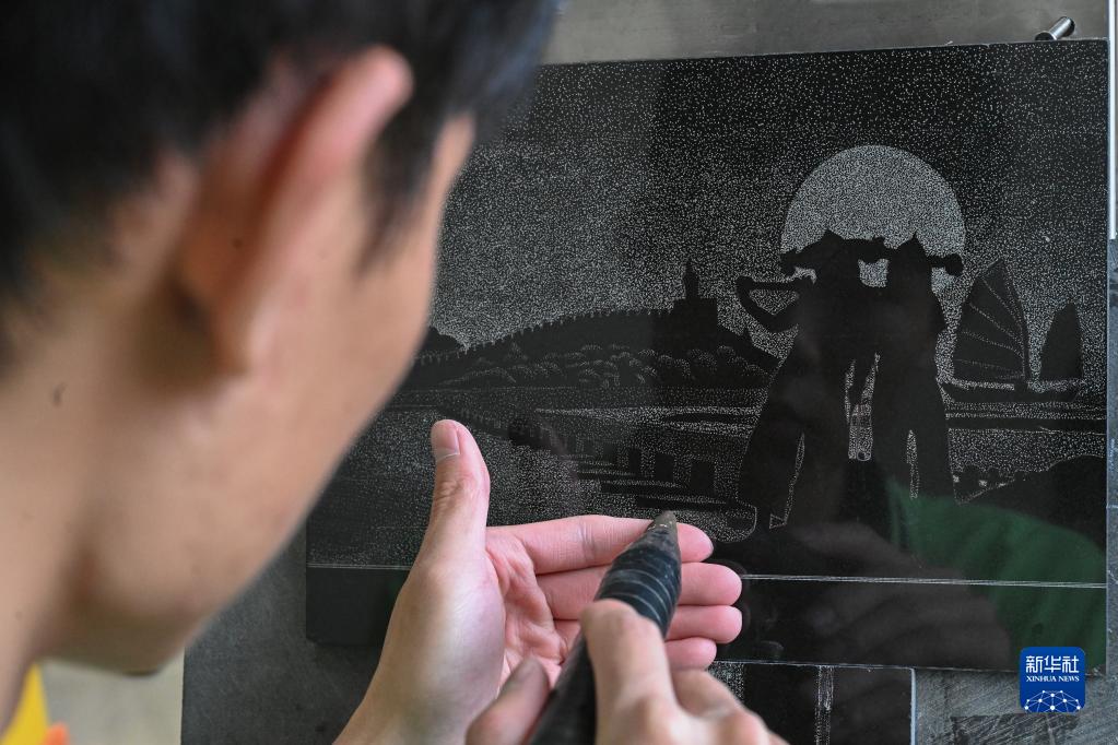11月20日,聽障學生在泉州市特殊教育學校聽障職教大樓里上影雕課。