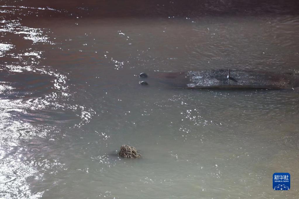 11月21日拍攝的長江口二號古船桅桿出水畫面。
