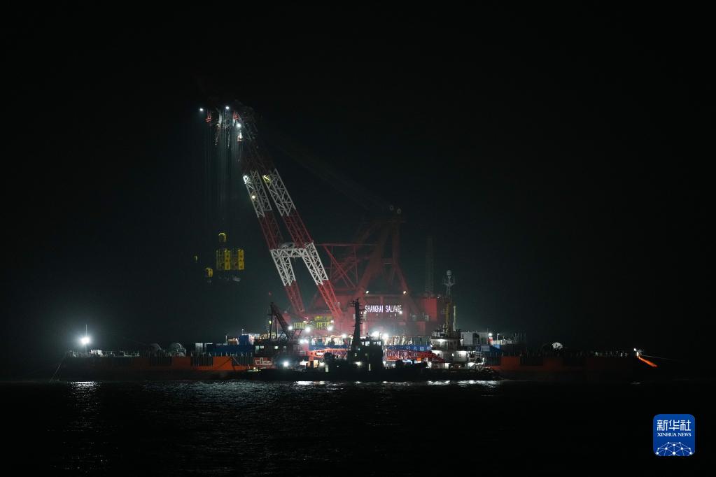 11月20日拍攝的長江口二號古船整體打撈現場。