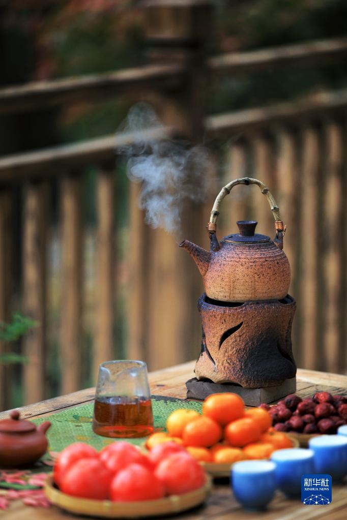 11月15日,在福建省武夷山市,人們圍爐煮茶。