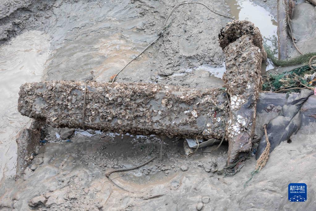 11月21日清晨拍攝的長江口二號古船船體局部。