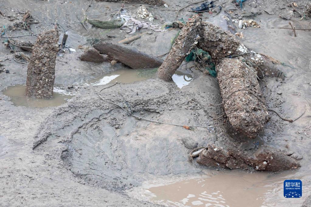 11月21日清晨拍攝的長江口二號古船船體局部。