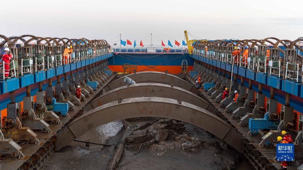 采用世界首創的“弧形梁非接觸文物整體遷移技術”, 我國迄今水下考古發現的體量最大的木質沉船——長江口二號古船21日在長江口水域成功實施整體打撈。隨著打撈進展有序推進,21日清晨,長江口二號古船船體已局部露出水面,初露真容。