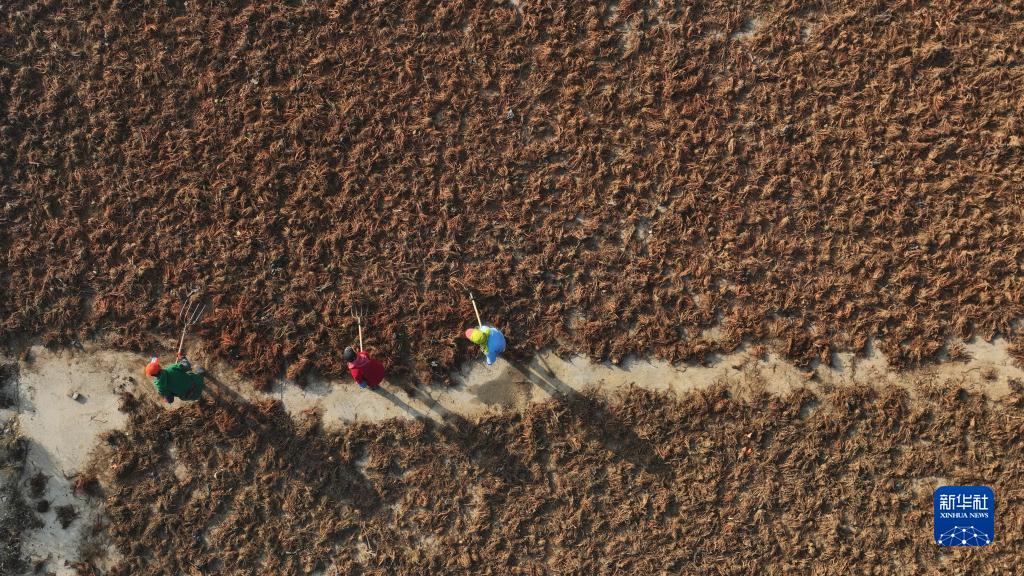 11月21日,在河北省唐山市開平區栗園鎮劉官屯村,農民在分揀、晾曬丹參。