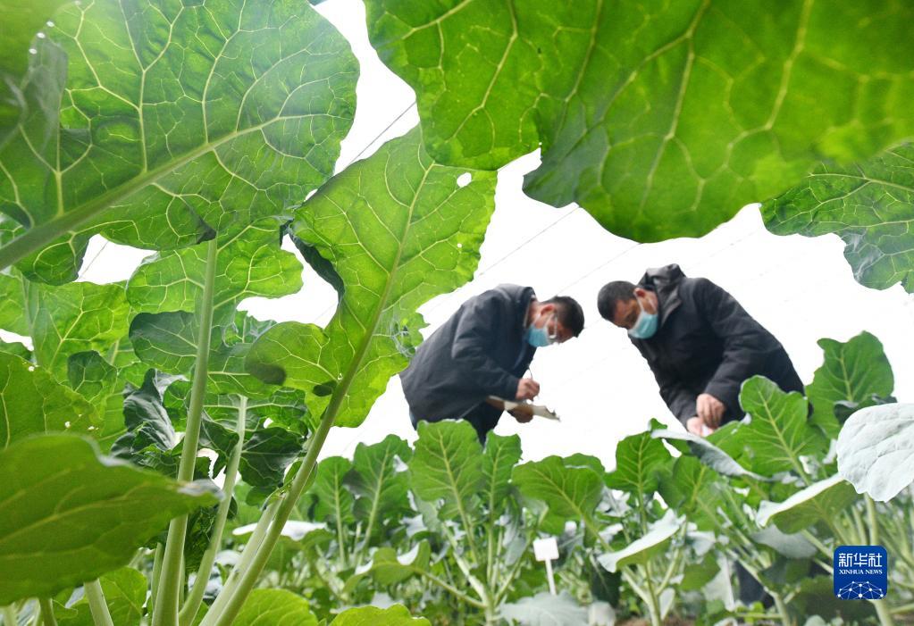 11月20日,在河北省石家莊市欒城區京蔬農業種植基地,科研人員在記錄觀察西蘭花特性。