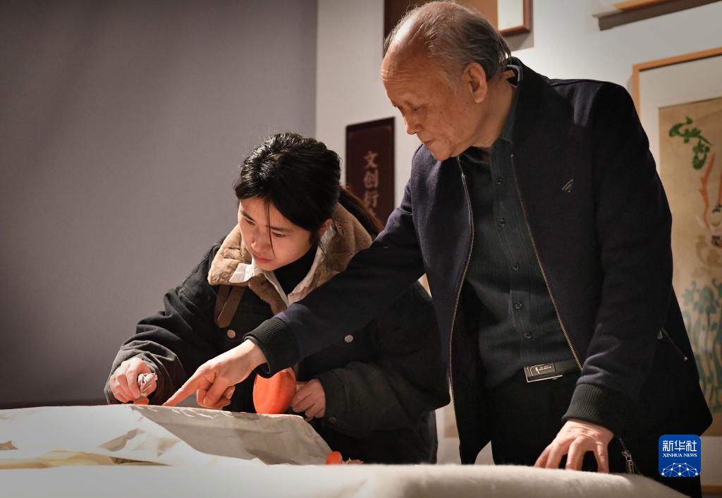 在鄭州商都遺址博物院臨時展廳里的體驗區,李仁清指導學員撲墨(11月17日攝)。
