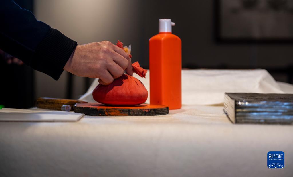 上紙、噴濕、剪紙、砸刷、晾干、撲墨、粘接、修復……一系列流程下來,立體石雕磚上的雕像就纖毫畢現地展露在平面拓片之上,59歲的李仁清拿起拓片仔細地檢查著每一處細節。