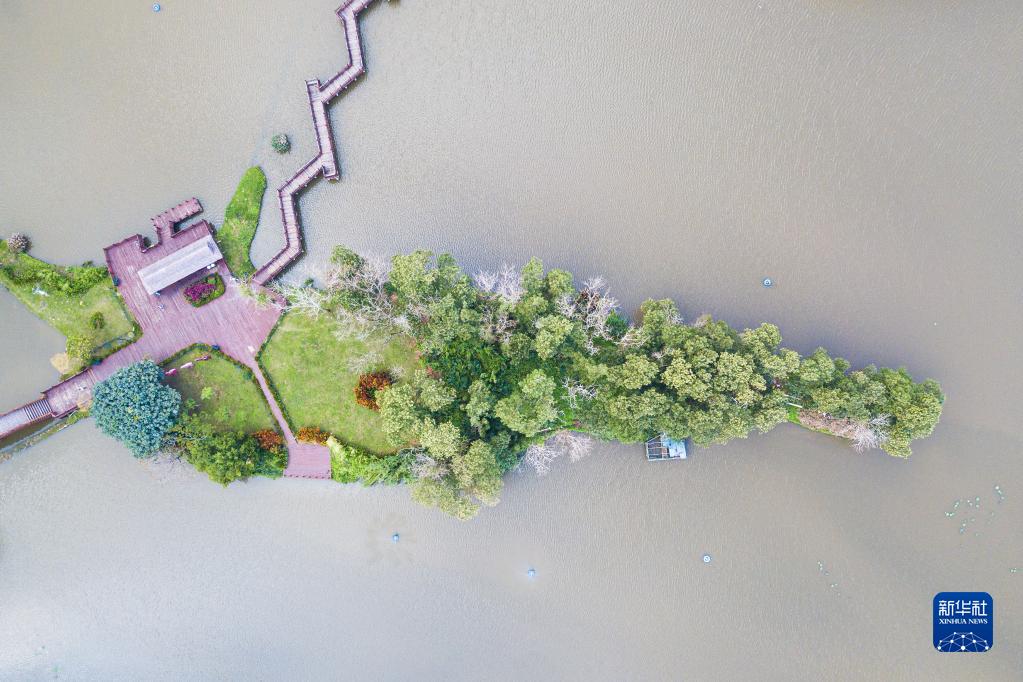 11月20日在海南省屯昌縣拍攝的文贊生態濕地公園景色(無人機照片)。