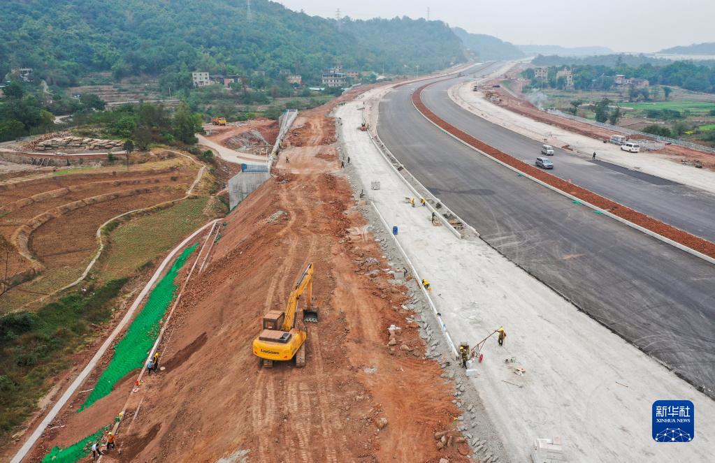 這是11月21日拍攝的重慶科學大道二期工程一標段項目施工作業現場(無人機照片)。