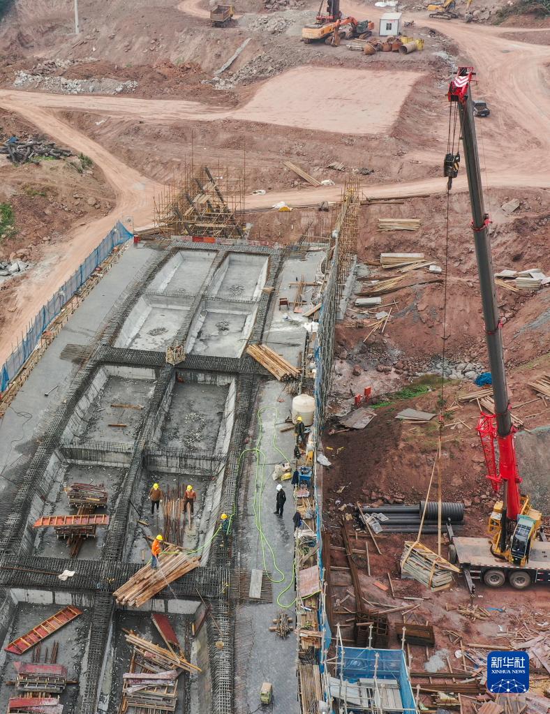 這是11月21日拍攝的重慶科學大道二期工程一標段項目施工作業現場(無人機照片)。