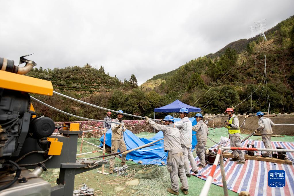 11月20日,安徽送變電工程有限公司施工人員在施工現場展放導線。