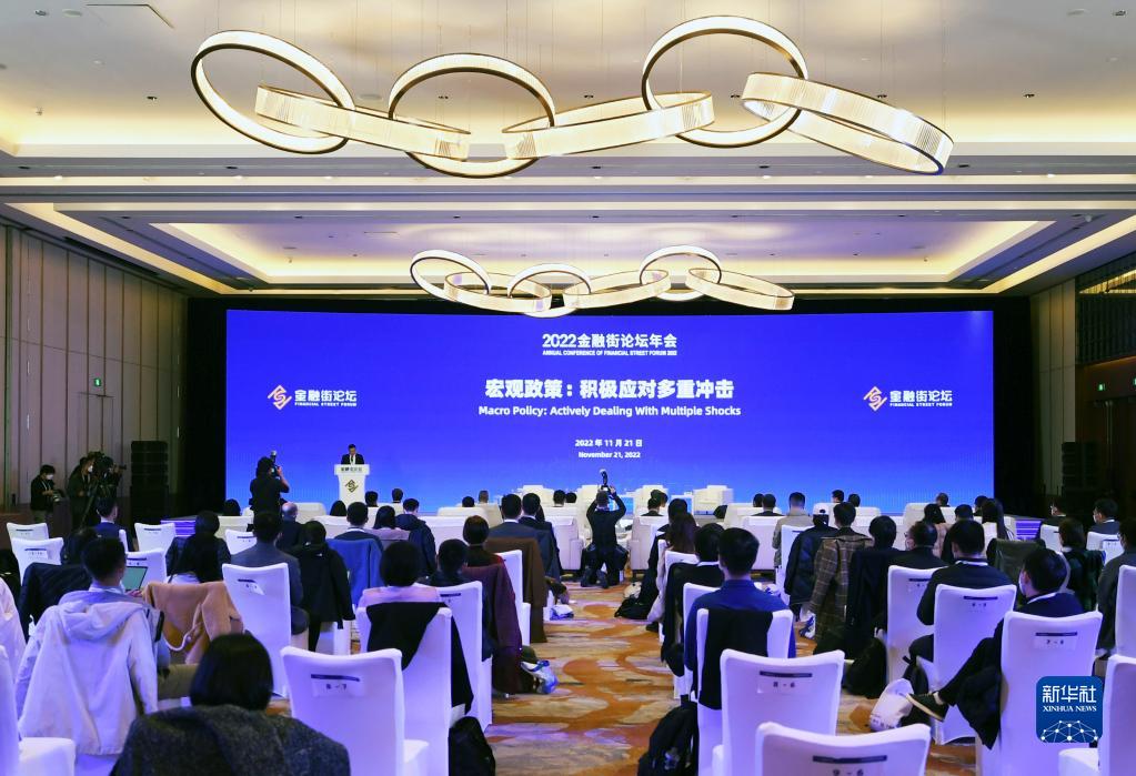 這是11月21日拍攝的2022金融街論壇年會中的“宏觀政策:積極應對多重沖擊”論壇現場。