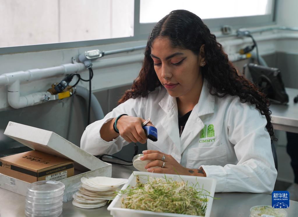 11月7日,一位研究人員在墨西哥特斯科科郊外國際玉米小麥改良中心做實驗。