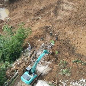 11月22日,救援人員在印度尼西亞西爪哇省展玉地區地震震中附近的山體滑坡現場開展救援(無人機照片)。