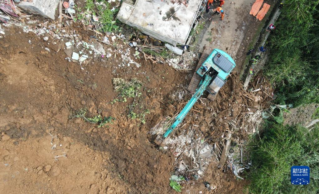 11月22日,救援人員在印度尼西亞西爪哇省展玉地區地震震中附近的山體滑坡現場開展救援(無人機照片)。