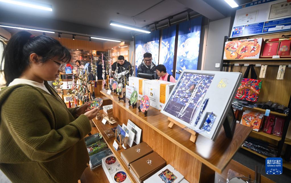 11月22日,游客在勝豐村菱瓏灣的文創商店選購特色旅游產品。