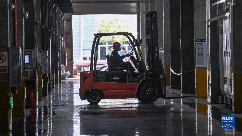 11月21日,在廣西中偉新能源科技有限公司生產車間,一名黨員突擊隊員在調運新能源材料。