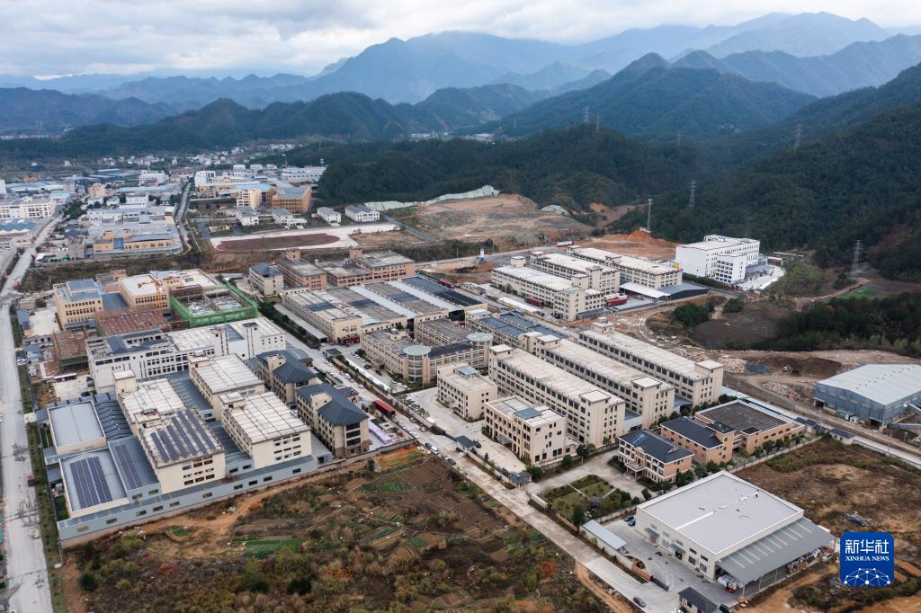這是11月22日在杭州市臨安區龍崗鎮拍攝的中國堅果炒貨食品城,這是一個集生產加工、銷售展示、觀光旅游等功能于一體的現代化園區(無人機照片)。
