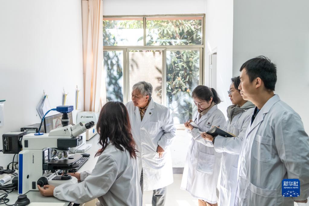 11月22日,朱兆云(左二)在云南省藥物研究所實驗室指導學員做研究。