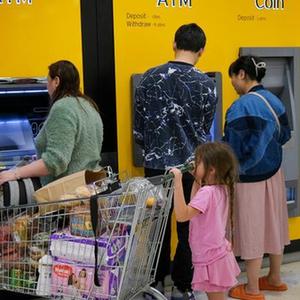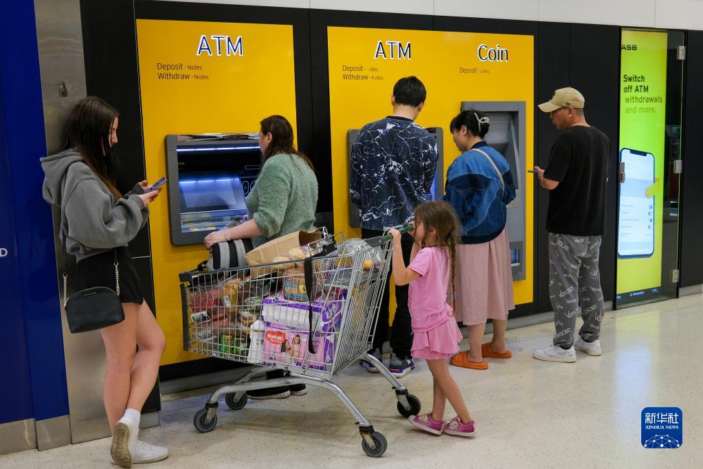 11月21日,人們在新西蘭最大城市奧克蘭的一處自動提款機前等待取款。
