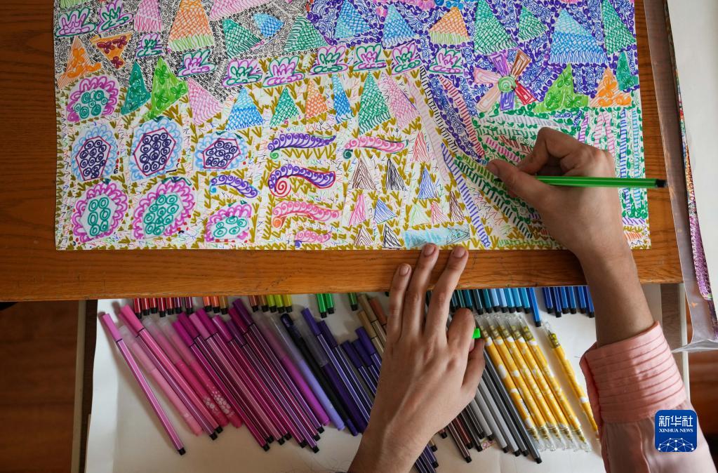 辛格在位于天津市津南區的家中進行繪畫創作(11月22日攝)。