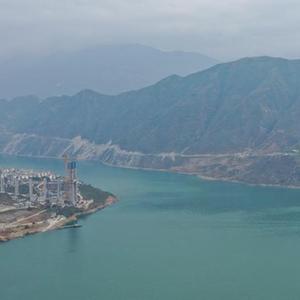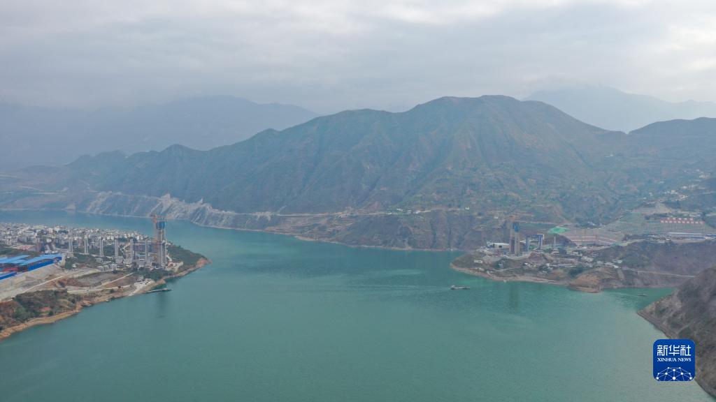 這是11月23日拍攝的卡哈洛金沙江大橋施工現場(無人機照片)。