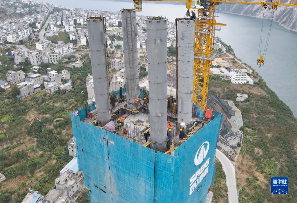 這是11月23日拍攝的卡哈洛金沙江大橋施工現場(無人機照片)。