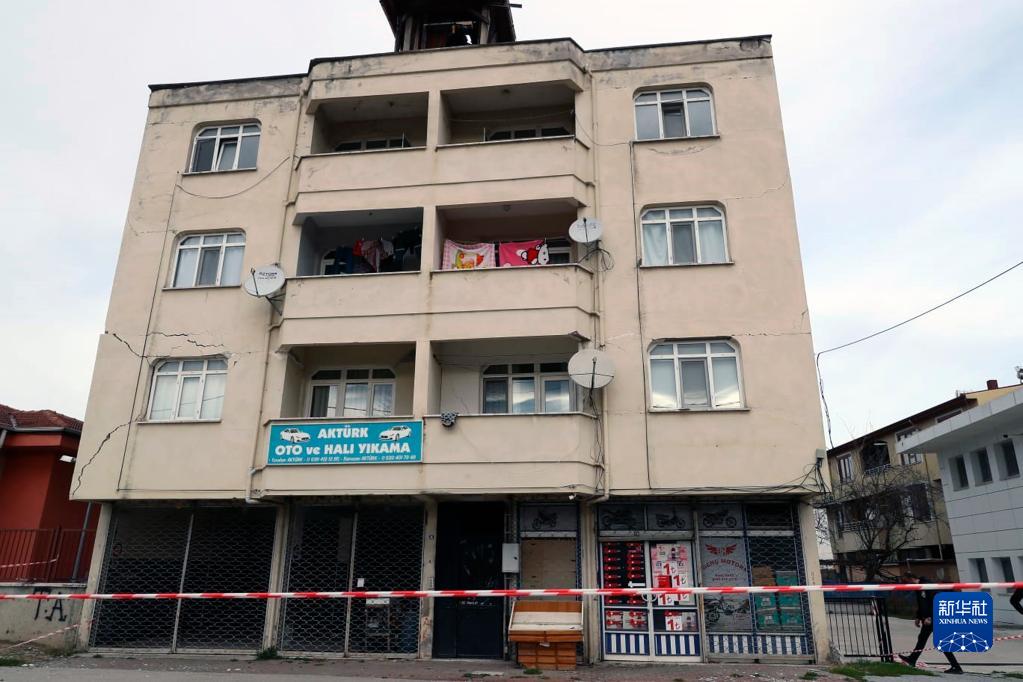 這是11月23日在土耳其迪茲杰拍攝的在地震中受損的房屋。