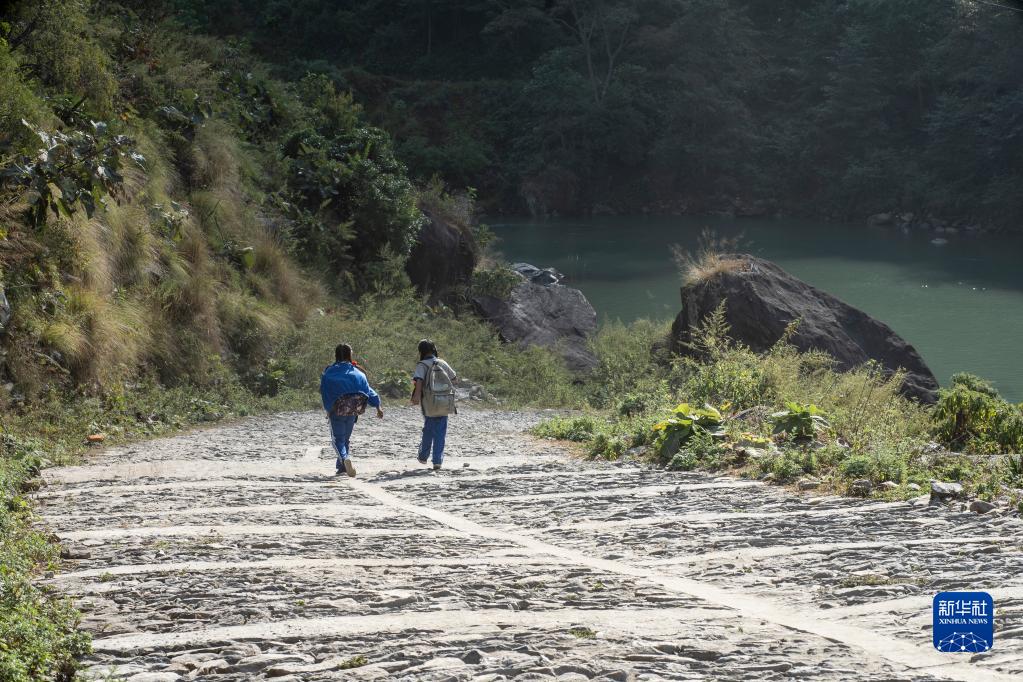 11月8日,尼泊爾勒姆宗縣村民走在水電站項目公司幫助修繕的道路上。