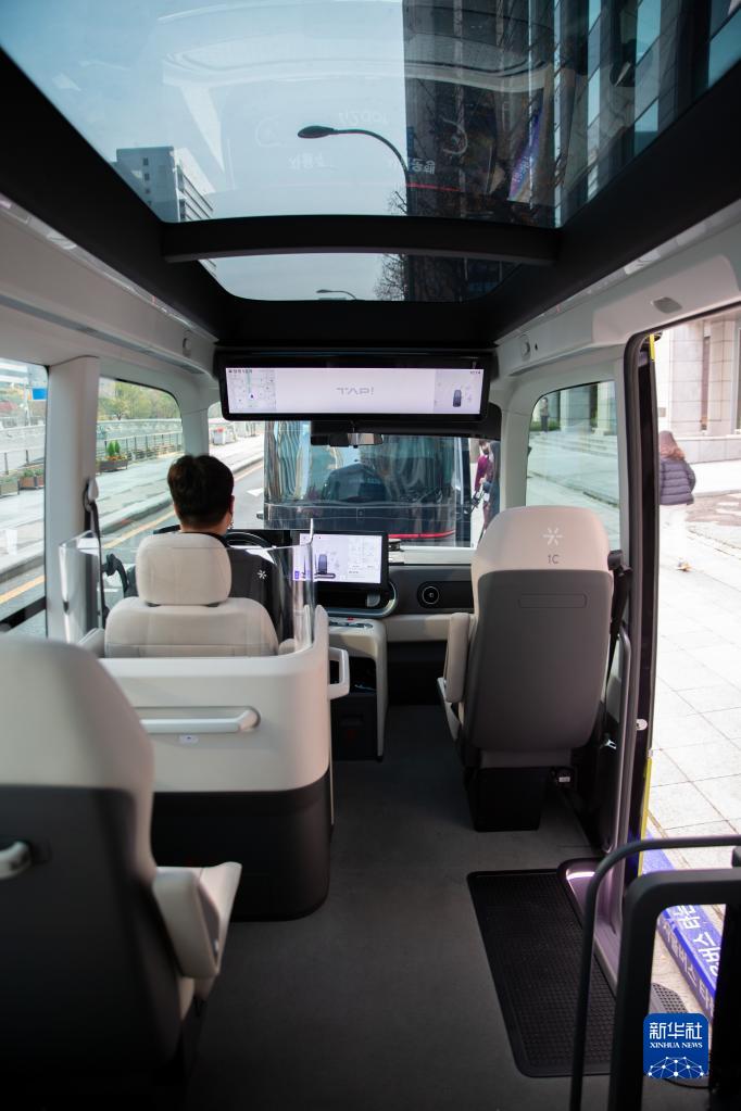 這是11月24日在韓國首爾拍攝的自動駕駛巴士內部。