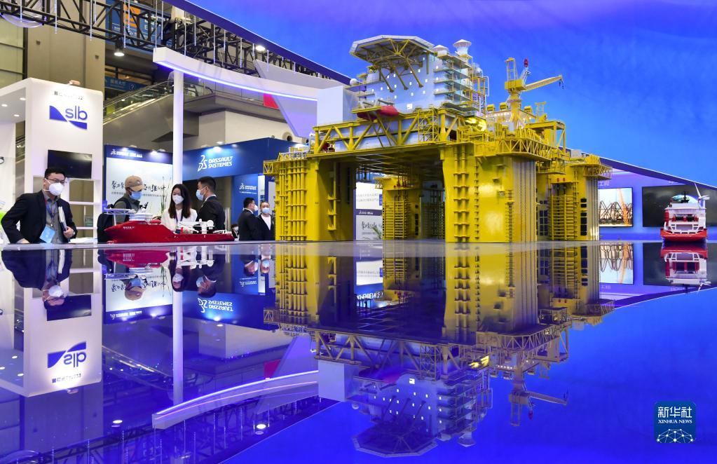 11月24日,觀眾在海博會現場觀看中國海油“深海一號”模型。