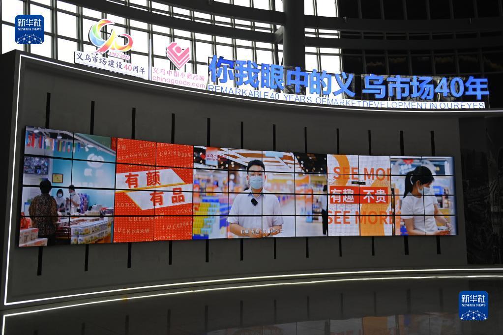 11月24日拍攝的義烏市場建設40周年主題館的視頻展區。