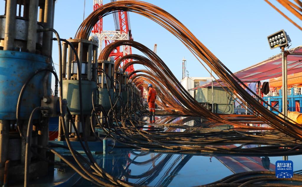 11月24日,一位工作人員走在“奮力”輪甲板上。