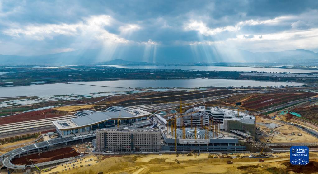 11月24日拍攝的建設中的彌蒙高鐵紅河站(無人機照片)。