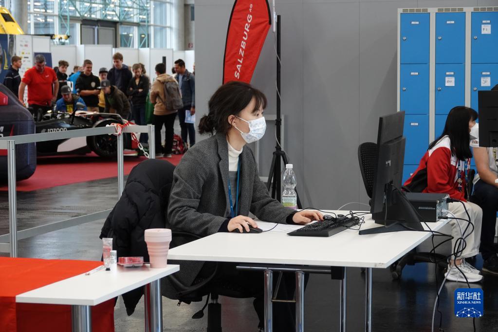 11月24日,來自上海第二工業大學的朱珂在奧地利薩爾茨堡參加2022年世界技能大賽特別賽奧地利賽區貨運代理項目比賽。