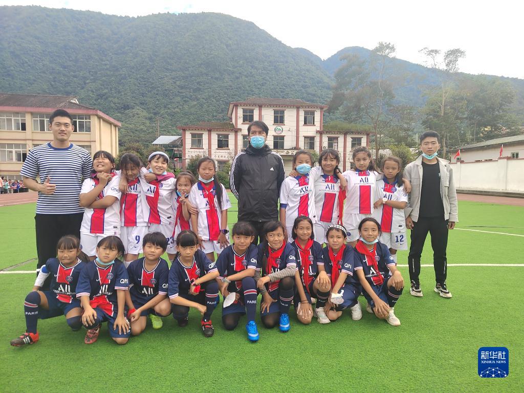 西藏墨脫縣完全小學陽光女子足球隊在一次比賽后合影留念(10月28日攝)。