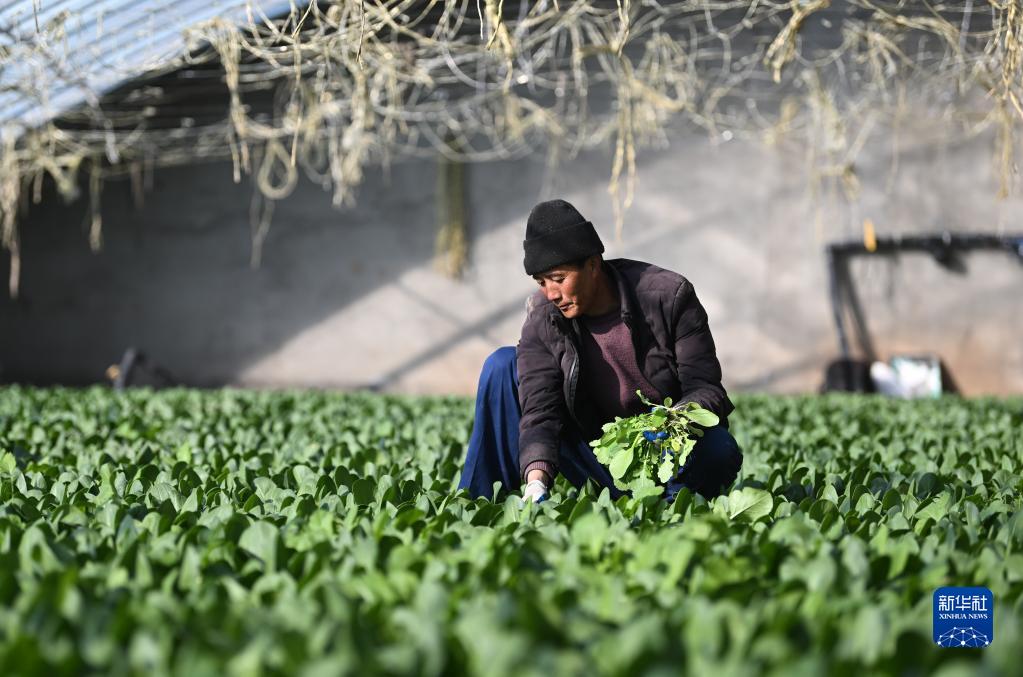冬日時節,青海省西寧市大通回族土族自治縣的蔬果大棚內,菜農忙著進行冬種、冬收等工作,保障蔬果市場供應。近年來,大通縣大力發展高效設施農業,鼓勵農民成立專業合作社,擴大高原綠色蔬菜種植,助力鄉村振興。