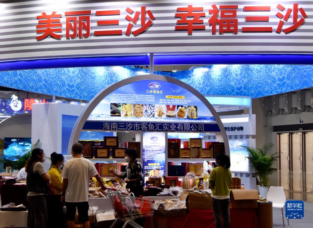 11月25日,觀眾在2022年中國(海南)國際海洋產業博覽會上購買海產品。