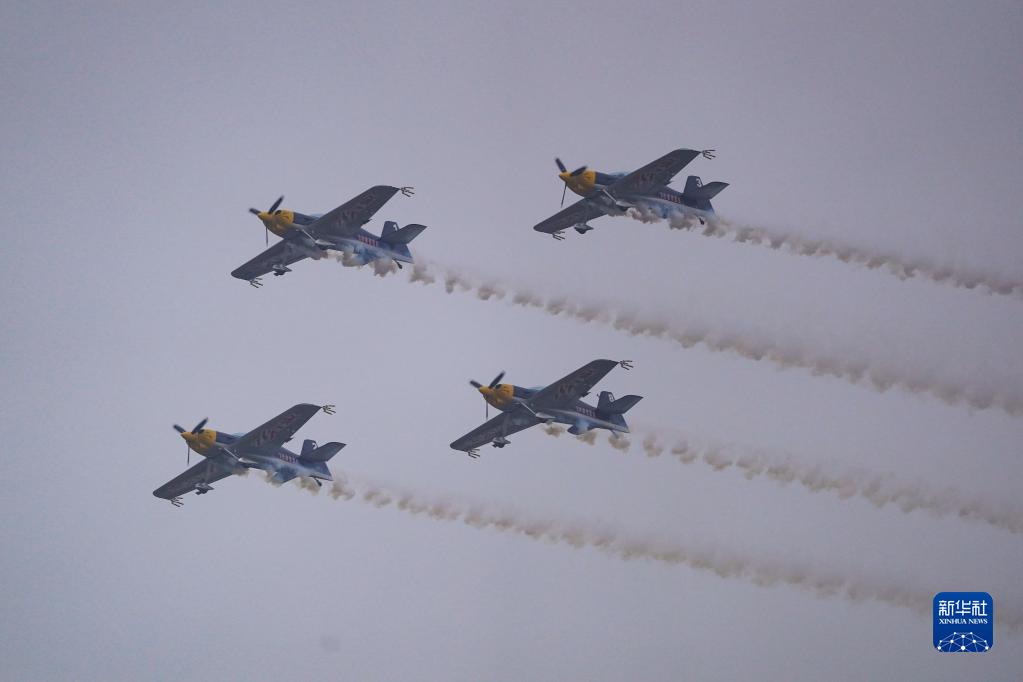 當日,2022中國航空產業大會暨南昌飛行大會在江西南昌開幕。來自中國的空軍航空大學“紅鷹”飛行表演隊、紅星表演隊、山河表演隊和來自俄羅斯的傳奇表演隊、極限表演隊以及來自南非的飛行家表演隊、紅牛表演隊等多支隊伍在空中奉獻了一場精彩大戲。