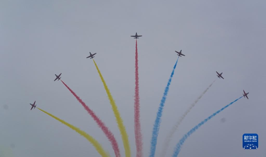 當日,2022中國航空產業大會暨南昌飛行大會在江西南昌開幕。來自中國的空軍航空大學“紅鷹”飛行表演隊、紅星表演隊、山河表演隊和來自俄羅斯的傳奇表演隊、極限表演隊以及來自南非的飛行家表演隊、紅牛表演隊等多支隊伍在空中奉獻了一場精彩大戲。