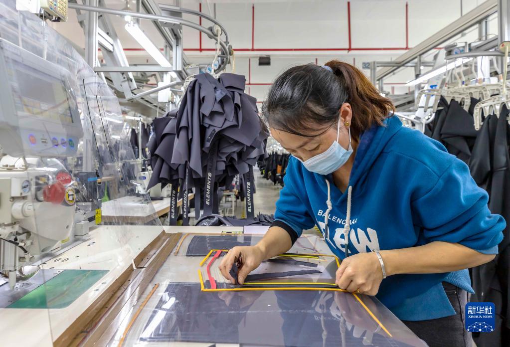 11月25日,員工在貴州省黔西市岔白工業園區一家服飾公司生產車間加工服裝。