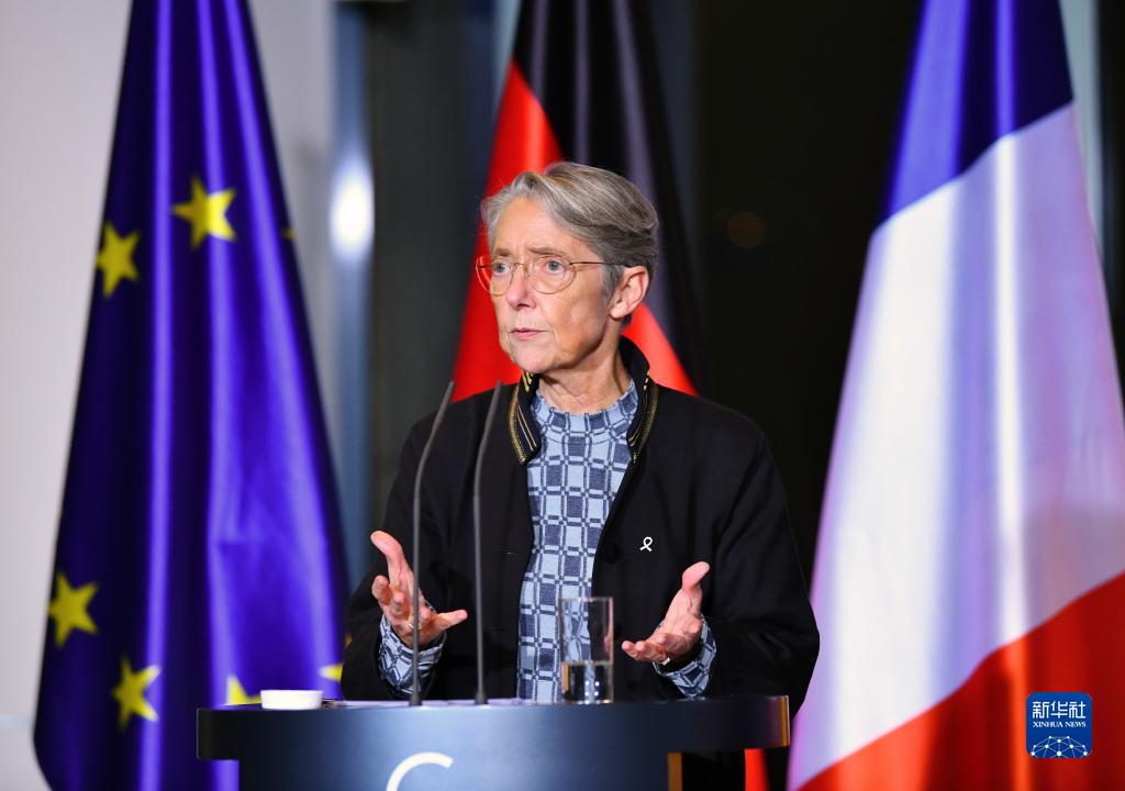 11月25日,在德國柏林總理府,法國總理博爾內同德國總理朔爾茨(未在畫面中)出席新聞發布會。