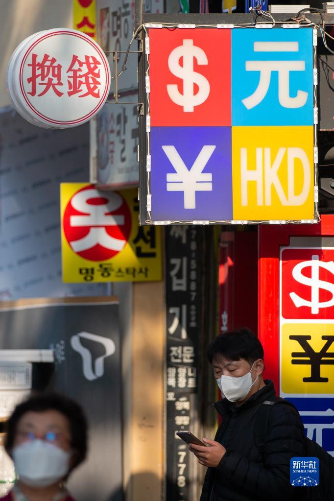 這是11月24日在韓國首爾明洞街區拍攝的換錢所。