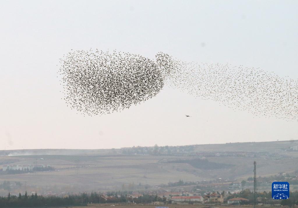 11月21日,一群椋鳥飛過土耳其安卡拉郊外的原野。