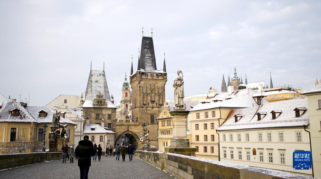 11月18日晚,捷克首都布拉格迎來今冬首場降雪。