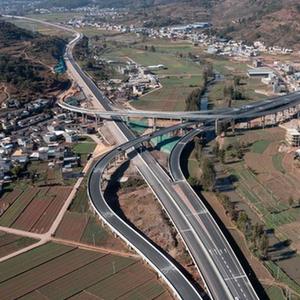 這是11月25日拍攝的四川沿江高速會東南—會理南閣互通先期通車段施工現場(無人機照片)。