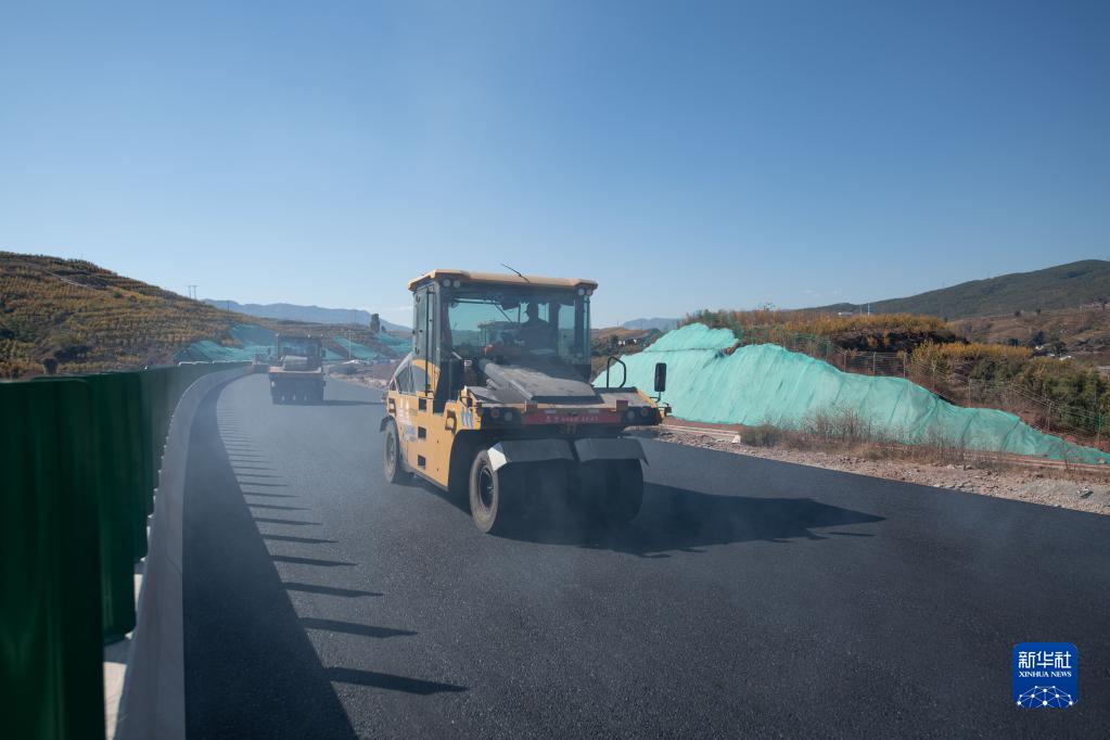 11月25日,施工人員在四川沿江高速會東南—會理南閣互通先期通車段施工。