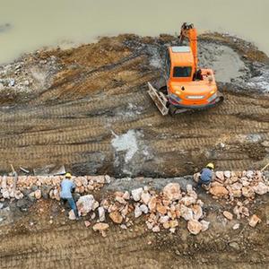 11月26日,施工人員在常寧市勝橋鎮河道綜合治理項目現場作業。