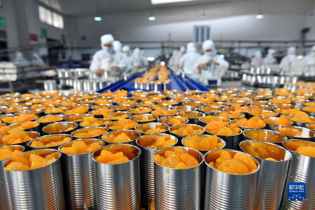時值柑橘豐收季,湖北省宜昌市秭歸縣將當地豐收的柑橘經加工后制作成罐頭,銷售海內外市場。近年來,秭歸縣采取“龍頭企業+基地+合作社+農戶”方式發展柑橘產業,企業將農民收獲的柑橘進行深加工并銷售,幫助農民增收,助力鄉村振興。